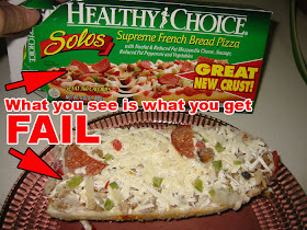 2. All that is important to note is that the two images stand in stark contrast. The photo gives you the impression that there are so many toppings you can barely even SEE the cheese but here we see in Exhibit A the bare reality. Where's all the good stuff??